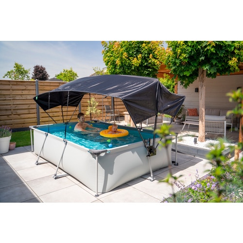 | Einsatzbereich | Ideal für die Beschattung von oberirdischen Pools, Planschbecken, Whirlpools, aber auch für Terrassenbereiche, Sandkästen oder Spielbereiche im Garten. Die kompakten Maße sind gut anpassbar. |